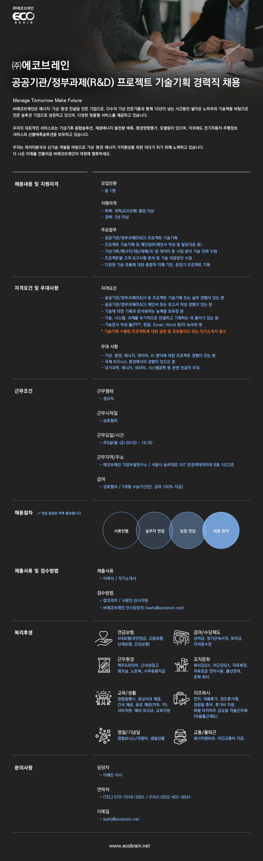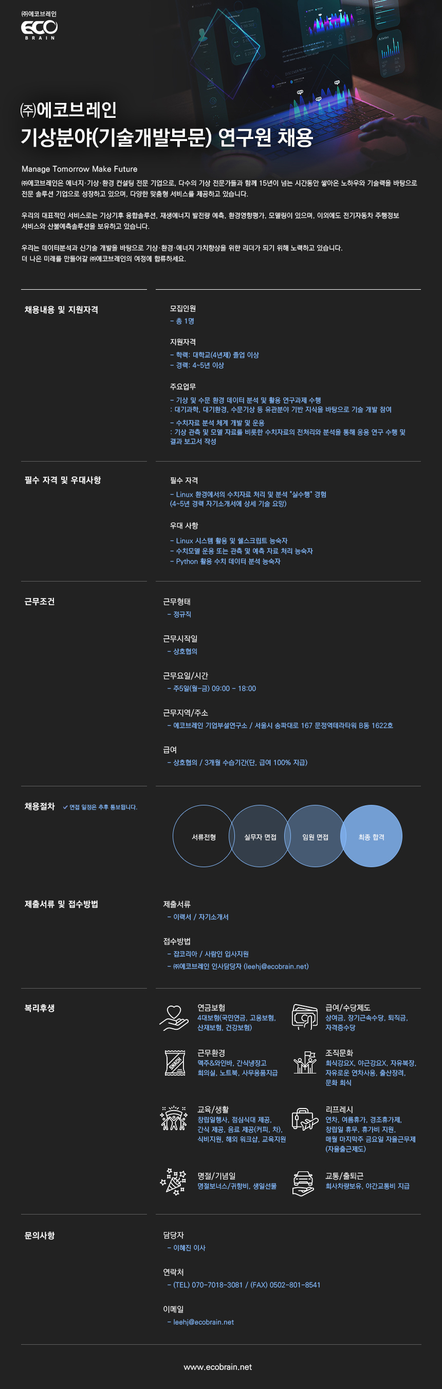 (주)에코브레인 채용공고 알림