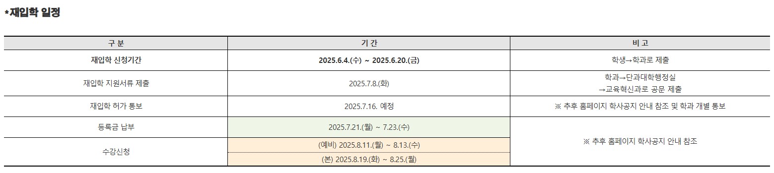 2025학년도 2학기 재입학 추진 안내
