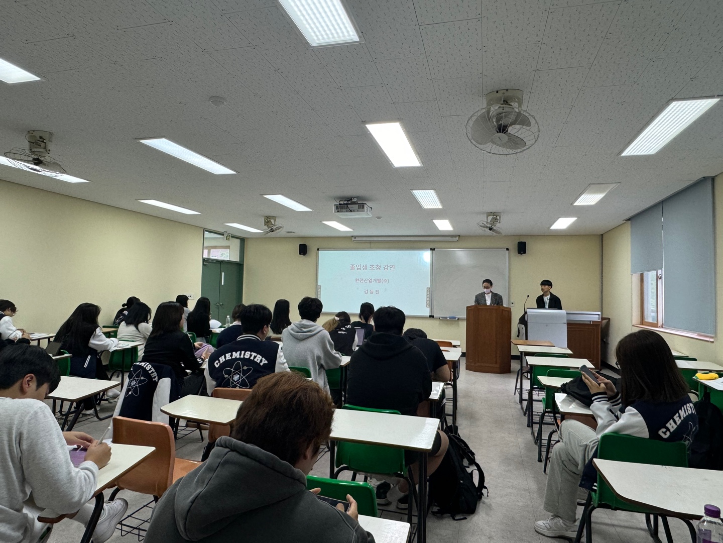 화학신소재학과 학생들의 취업 준비를 위한 진로 탐색과 진로 설정에 실질적이고 직접적인 도움을 주고 대학 생활의 노하우와 졸업 후 진출할 수 있는 다양한 직무 및 취업 준비 방법을 소개를 위한 동문 특강을 개최하였다.
