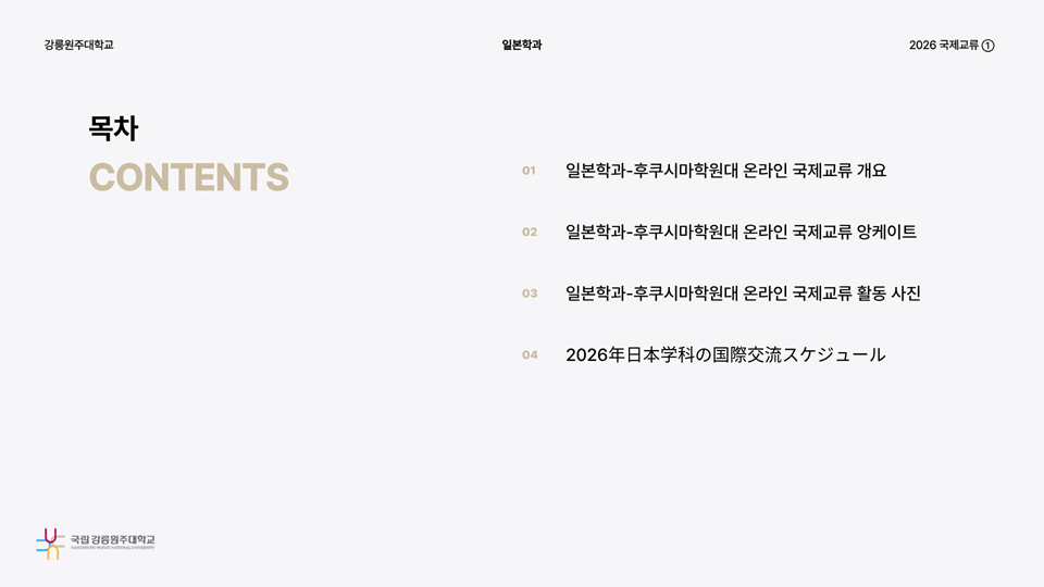 fnctId=bbs,fnctNo=736 [국제교류] 2026 후쿠시마학원대학 온라인 국제교류 보고서 글번호 328196 작성일 2026.03.06 작성자 엄태봉 조회수 96 첨부파일 첨부파일이(가) 없습니다.