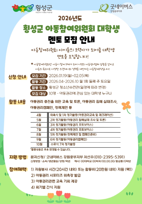 2026년 굿네이버스 강원중부지부 아동참여위원회 멘토 모집